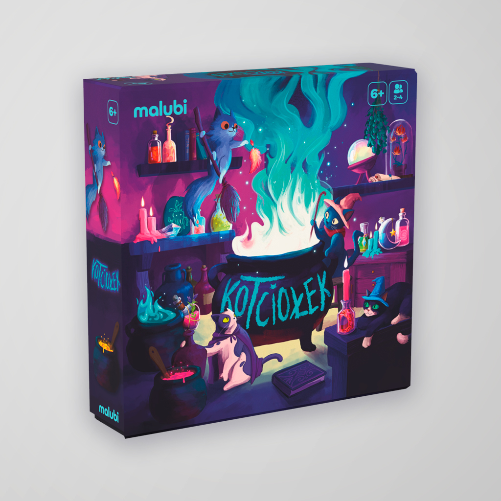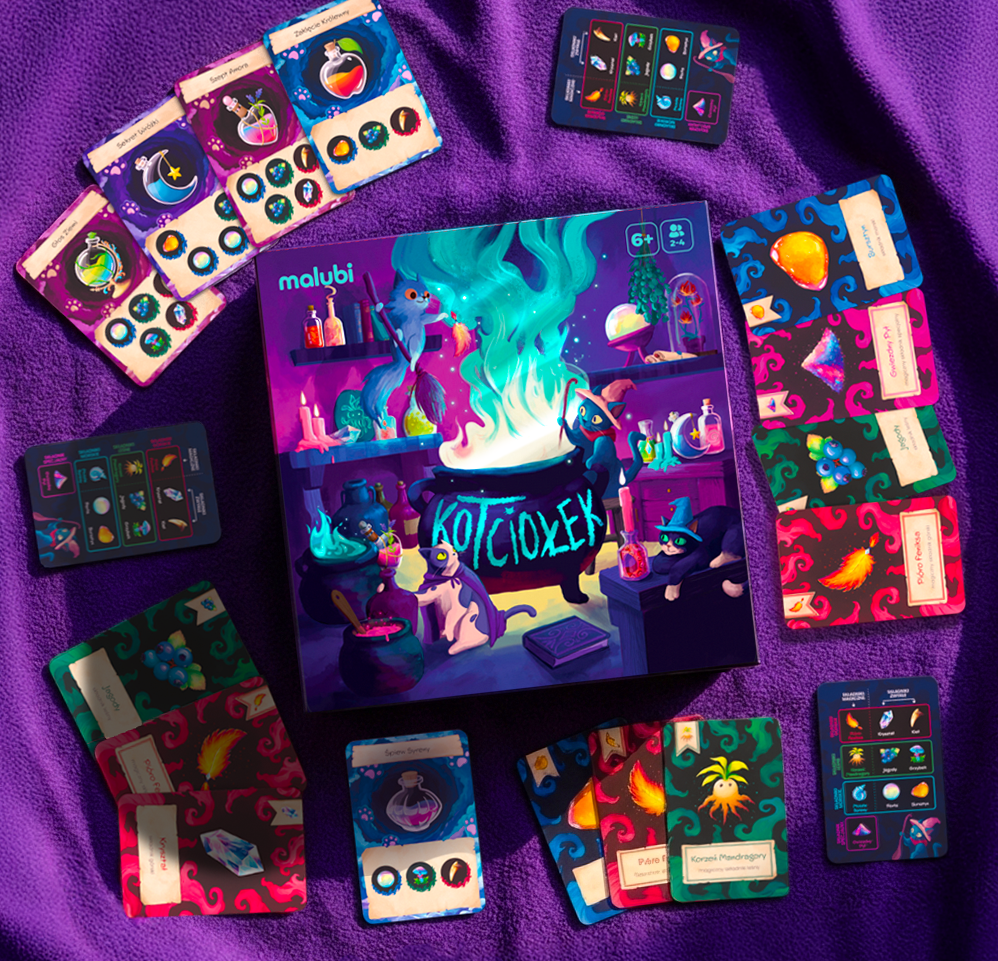 Kotciołek to dynamiczna gra karciana, w której gracze wcielają się w koty-alchemików tworzące magiczne mikstury pod nieobecność czarodzieja. Podczas rozgrywki zbierają i wymieniają się składnikami, planują swoje działania i próbują przechytrzyć rywali.